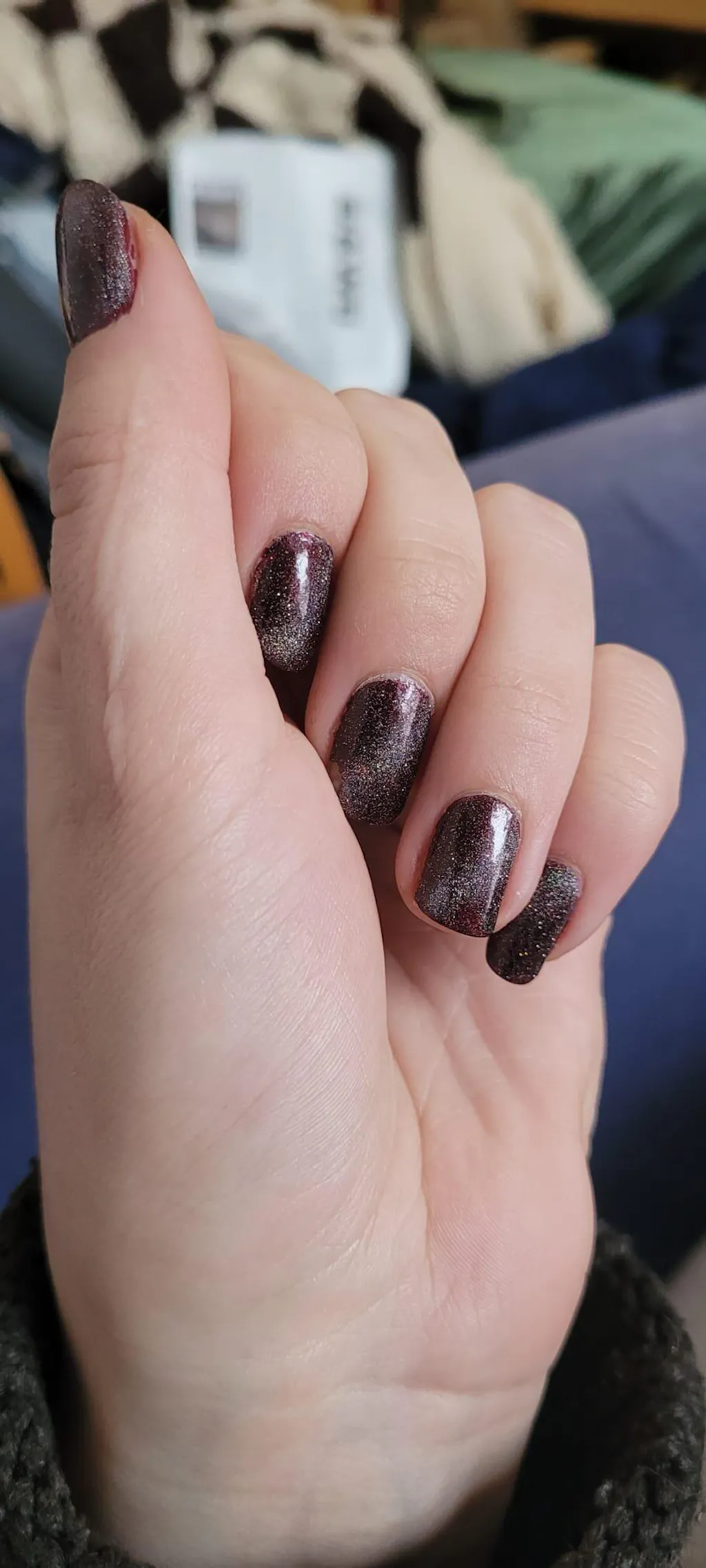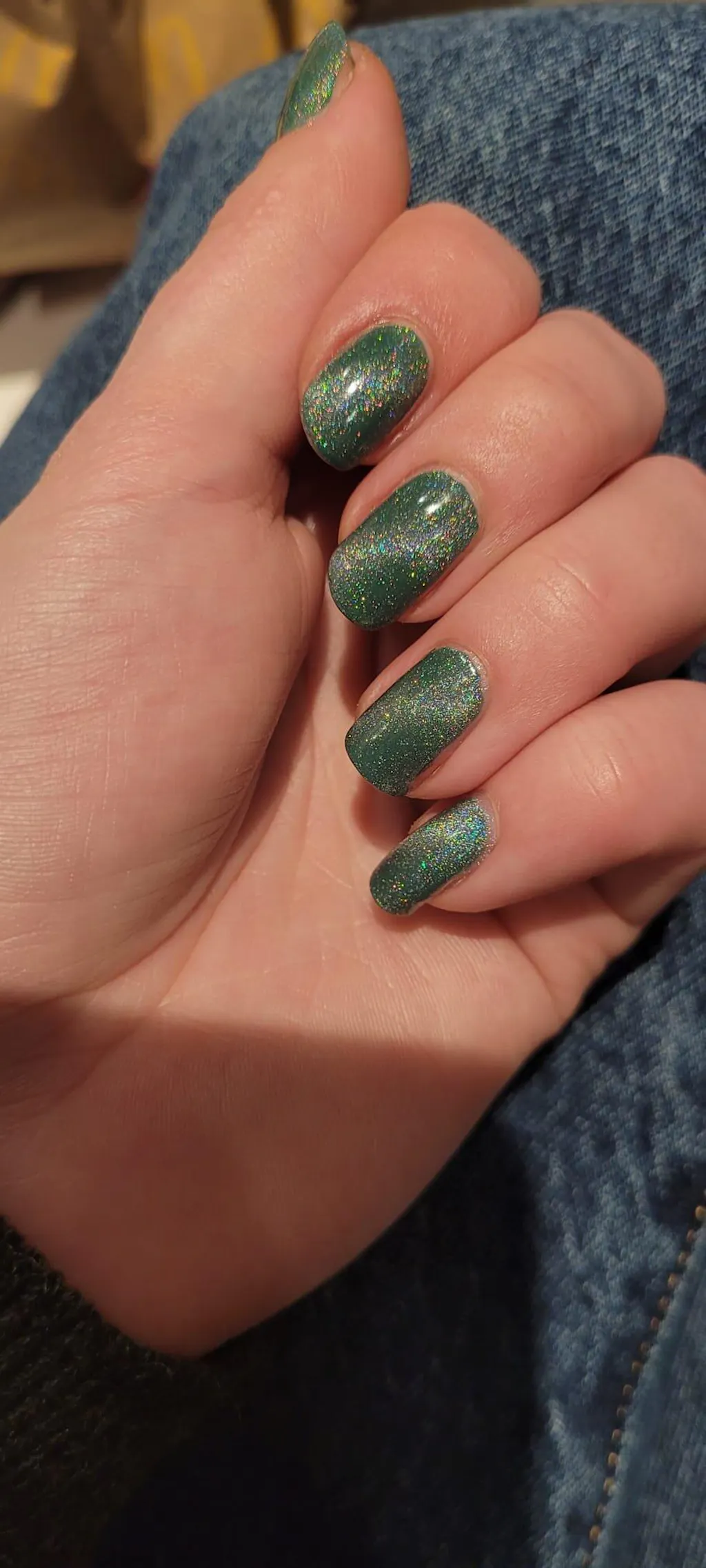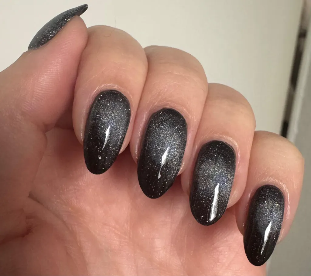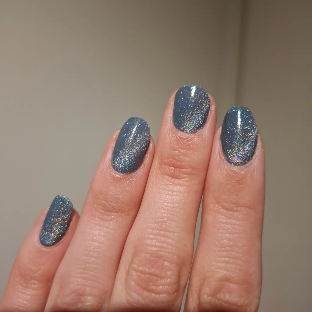 Can make anything holo with this one, plus it's also magnetic. Only, beware that magnetic particles have a slight greyish tinting effect, so expect a bit of that over color. I tried it over a black/grey aura which is my favorite way to wear this. I also did an entire holo rainbow, building it up to through many layers.