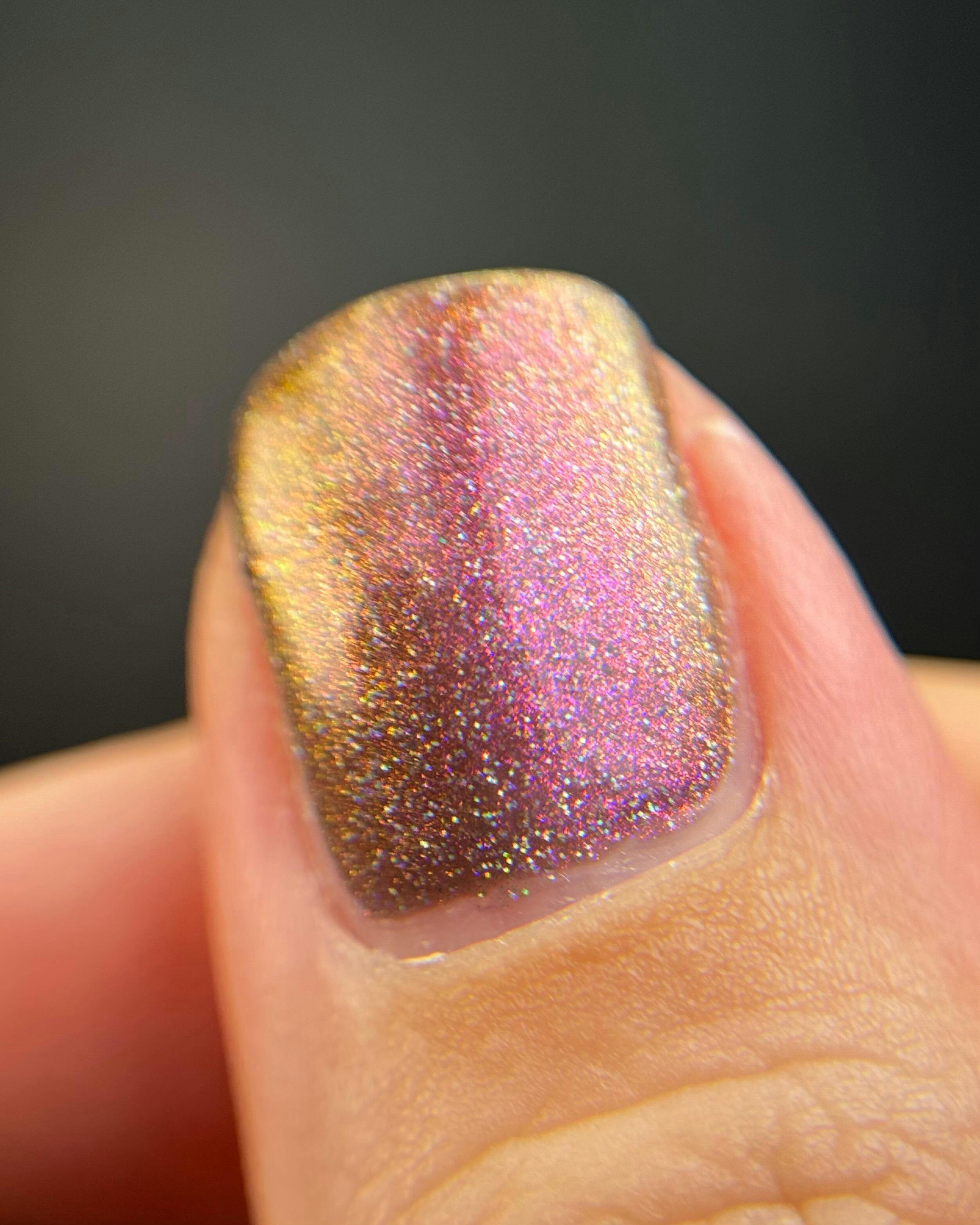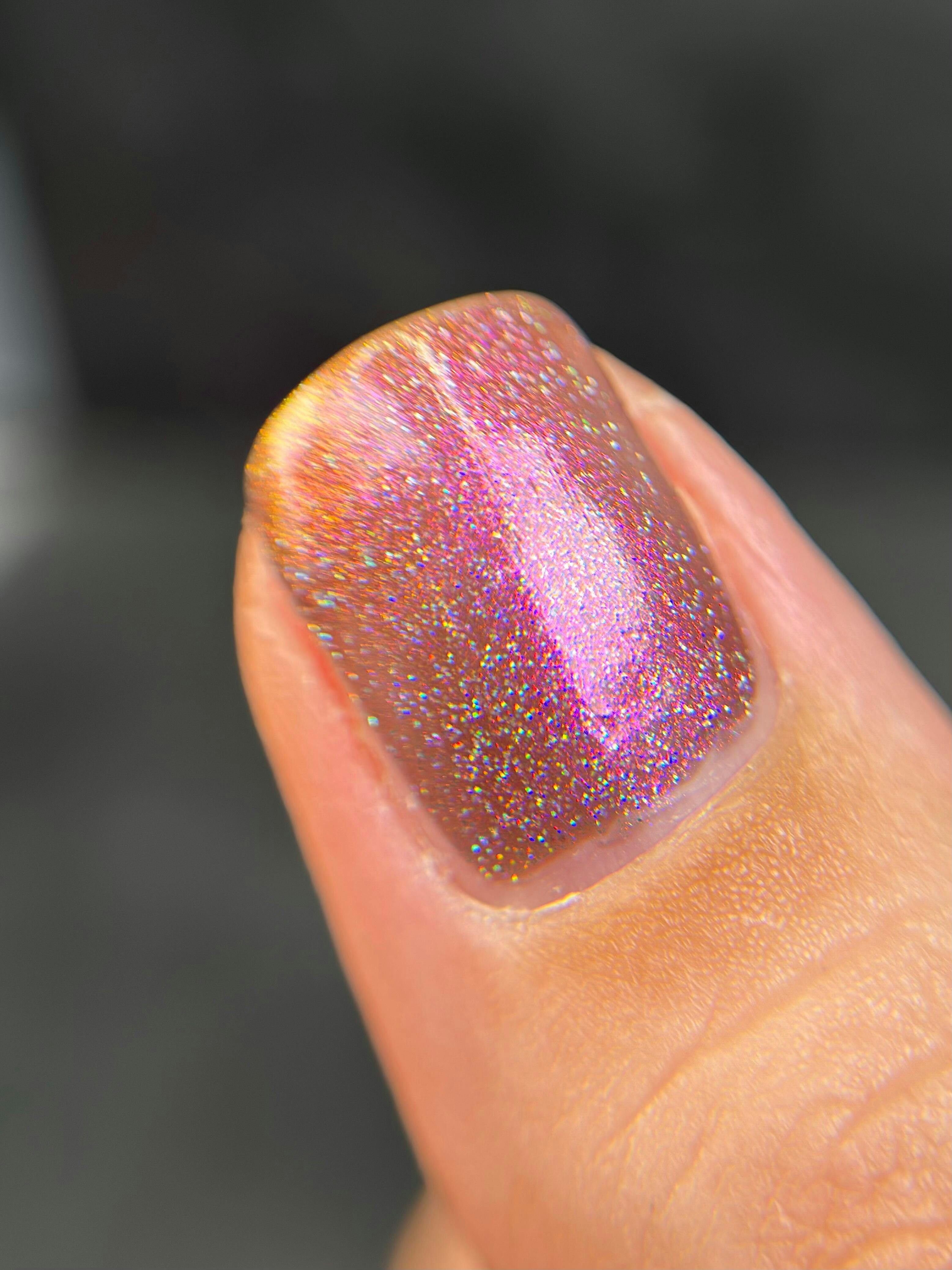 Cirque Colors tarot nail polish is a mysterious glitzy shimmer with the most perfect fortune teller feels. It's vegan. It's cruelty-free. And it's the loveliest non-toxic, 10-free creamy formula. This rosewood taupe pink with magenta/gold/green color-shifting shimmer and scattered holographic effect is one of Cirque's Shimmergraphics that combine glimmering shimmer pigments with prismatic holographic glitter for mega sparkles. So are you going for magical velvet curtains, crystal spheres, incense vibes? Put on your tarot nail polish and channel your inner modern witch.